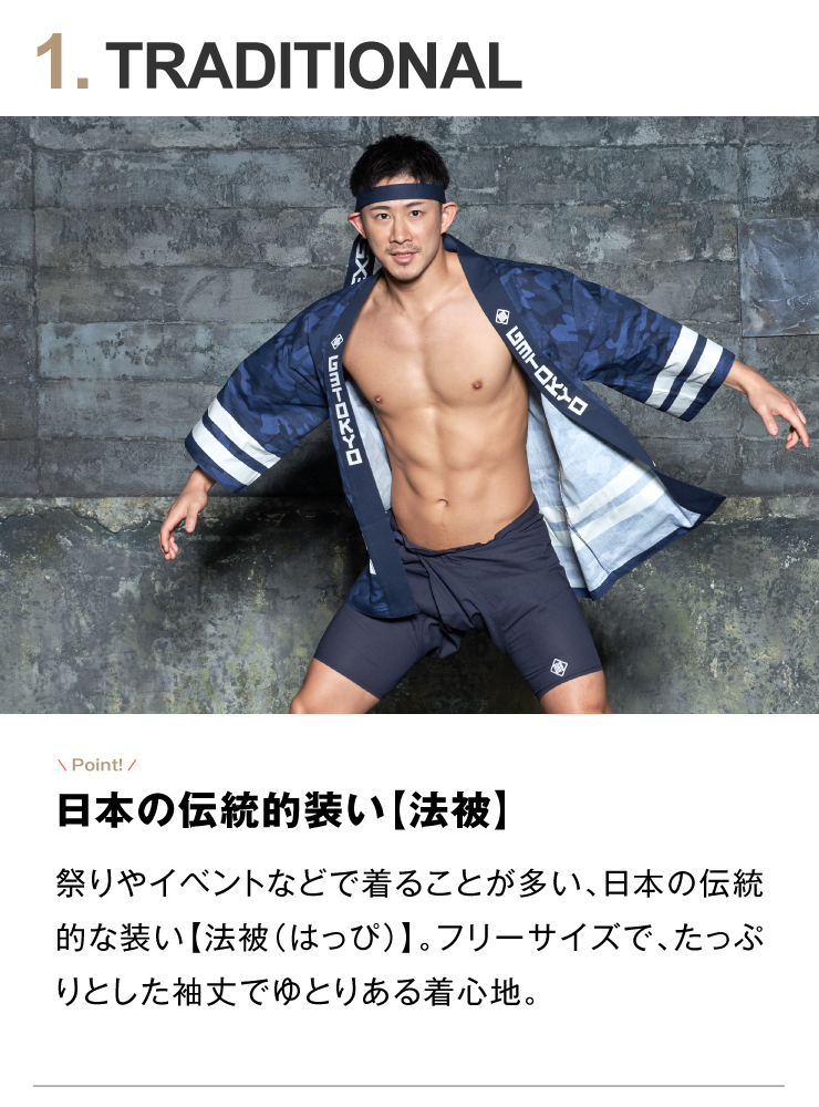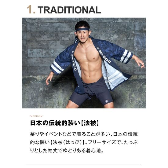 A traditional Japanese garment often worn at festivals and events: the "HAPPI" coat.